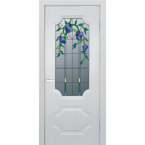 Дверь с ПВХ покрытием Эмма 10 ДО (Софт Белый, Цветной наливной витраж)